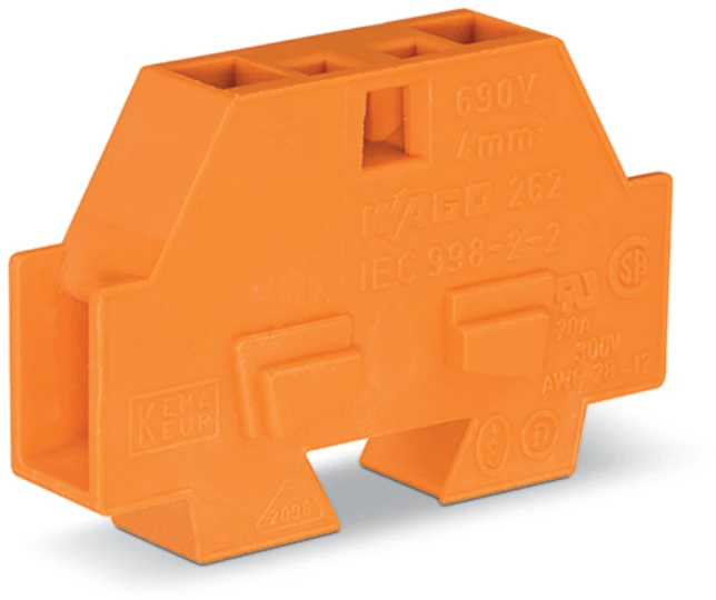 Złączka 2-przewodowa 4mm2 pomarańczowa ze stopką montażową 262-316 /50szt./