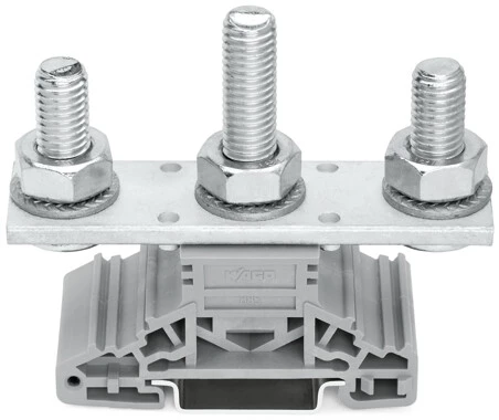 złączka sworzniowa; boczne miejsca na oznaczniki; na szynę TS 35 x 15 i 35 x 7,5; 3 x sworzeń M10; 120,00 mm²; szary