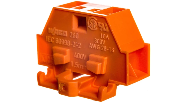 Złączka 2-przewodowa 1,5mm2 pomarańczowa ze stopką montażową 260-316 /50szt./