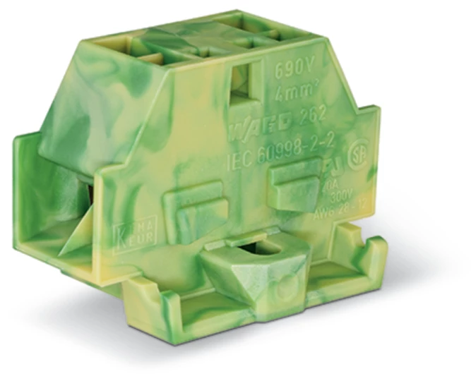 złączka 4-przewodowa; bez przycisków; z uchwytem montażowym; 1-bieg.; do mocowania śrubowego i podobnego typu; otwór montażowy Ø 3,2 mm; 4 mm²; CAGE CLAMP®; 4,00 mm²; żółto-zielony