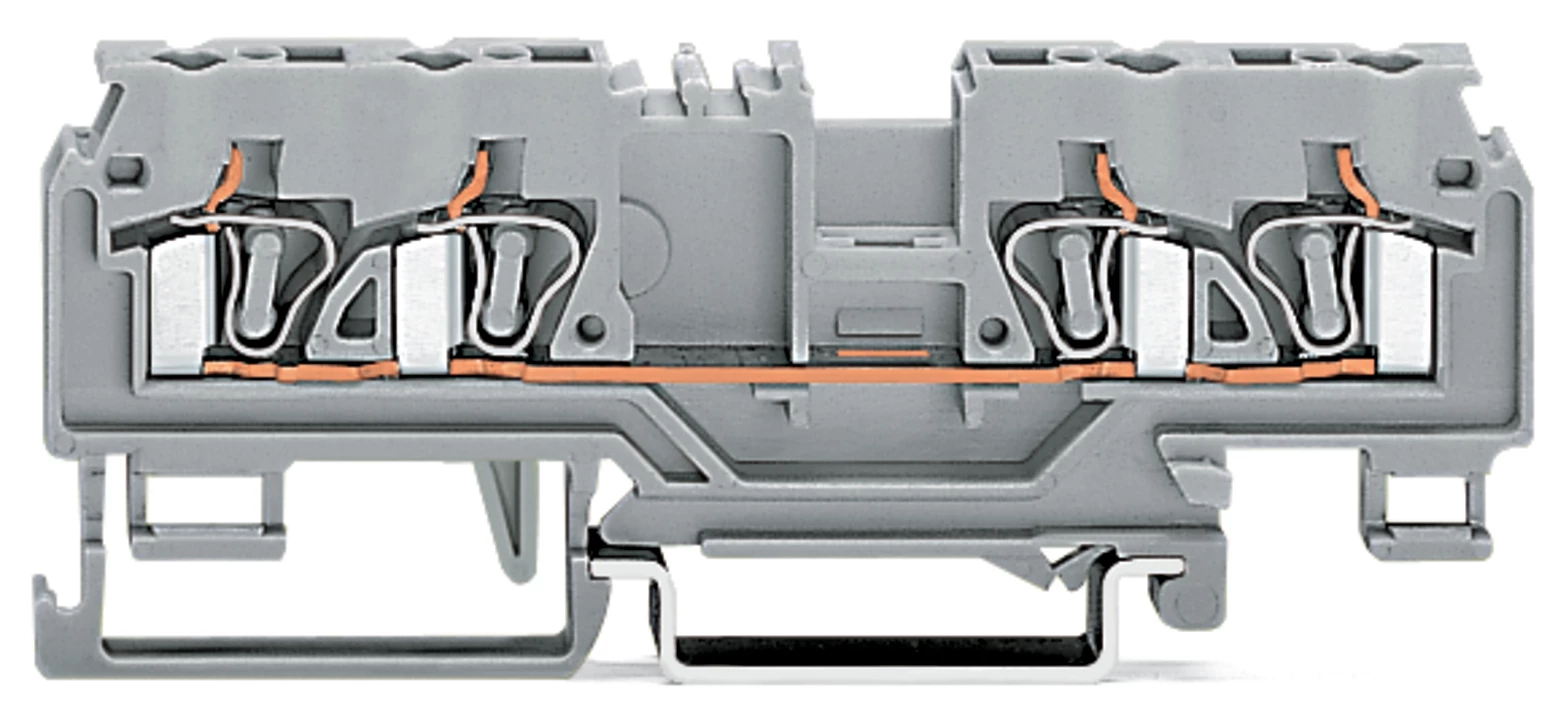 złączka przelotowa 4-przewodowa; 4 mm²; z otworem pomiarowym; bez szyny ekranowej; opis na środku; na szynę TS 35 x 15 i 35 x 7,5; CAGE CLAMP®; 4,00 mm²; szary