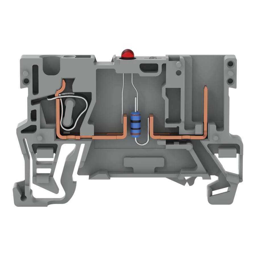 zł. baz. do zab. el. 1-przew./1-pinowa; LED czerwona; 24 V DC; na szynę TS 35 x 15 i 35 x 7,5; 4 mm²; CAGE CLAMP®; szary