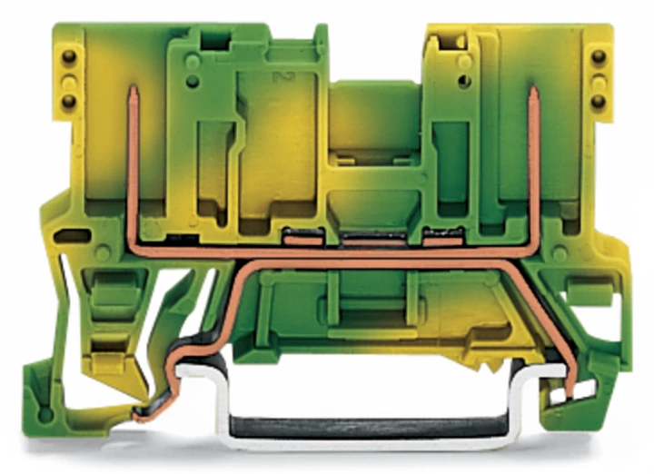 złączka bazowa PE 2-pinowa; na szynę TS 35 x 15 i 35 x 7,5; żółto-zielony