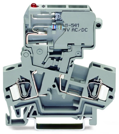złączka bezpiecznikowa 2-przewodowa; z uchylną podstawką bezpiecznika; do wkładki bezpiecznikowej aparatowej 5 x 20 mm; z sygnalizacją przepalenia wkładki przez LED; 30 - 65 V; na szynę TS 35 x 15 i 35 x 7,5; 4 mm²; CAGE CLAMP®; szary