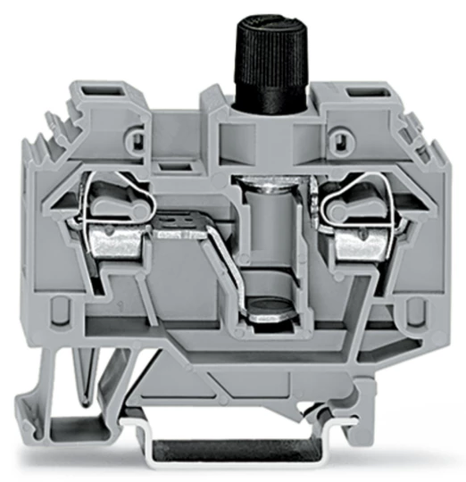 złączka bezpiecznikowa 2-przewodowa; do aparatowej wkładki bezpiecznikowej ¼" x 1¼"; bez sygnalizacji przepalenia wkładki; na szynę TS 35 x 15 i 35 x 7,5; 6 mm²; CAGE CLAMP®; szary