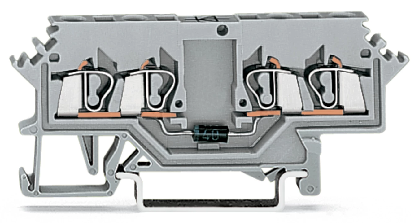 złączka do zabudowy elementów; 4-przew.; z diodą 1N4007; anoda po lewej; na szynę TS 35 x 15 i 35 x 7,5; 2,5 mm²; CAGE CLAMP®; szary