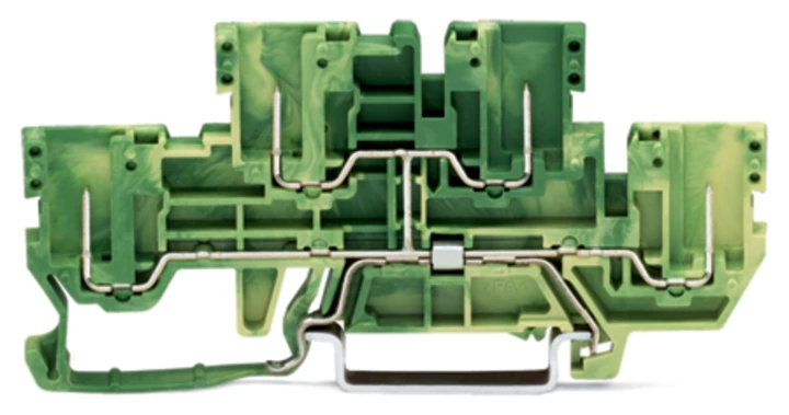 złączka bazowa 4-pinowa 2-piętrowa; złączka PE 4-pinowa; PE; z mostkowaniem wewnętrznym; na szynę TS 35 x 15 i 35 x 7,5; żółto-zielony