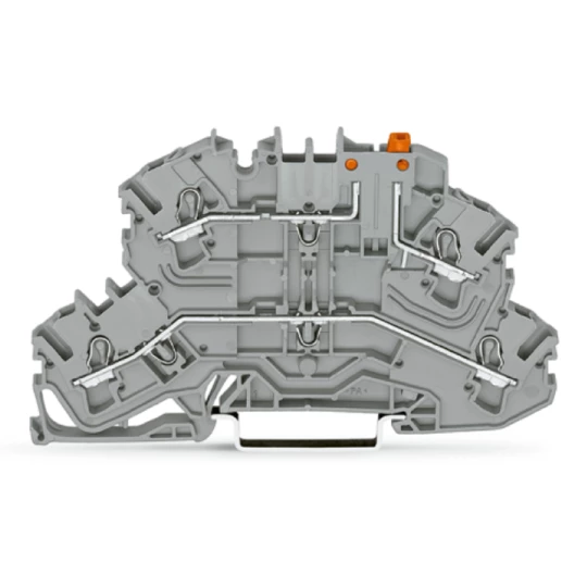 złączka rozłączalna 2-piętrowa; z uchylnym łącznikiem nożowym; L/L; na szynę TS 35 x 15 i 35 x 7,5; 2,5 mm²; Push-in CAGE CLAMP®; 2,50 mm²; szary