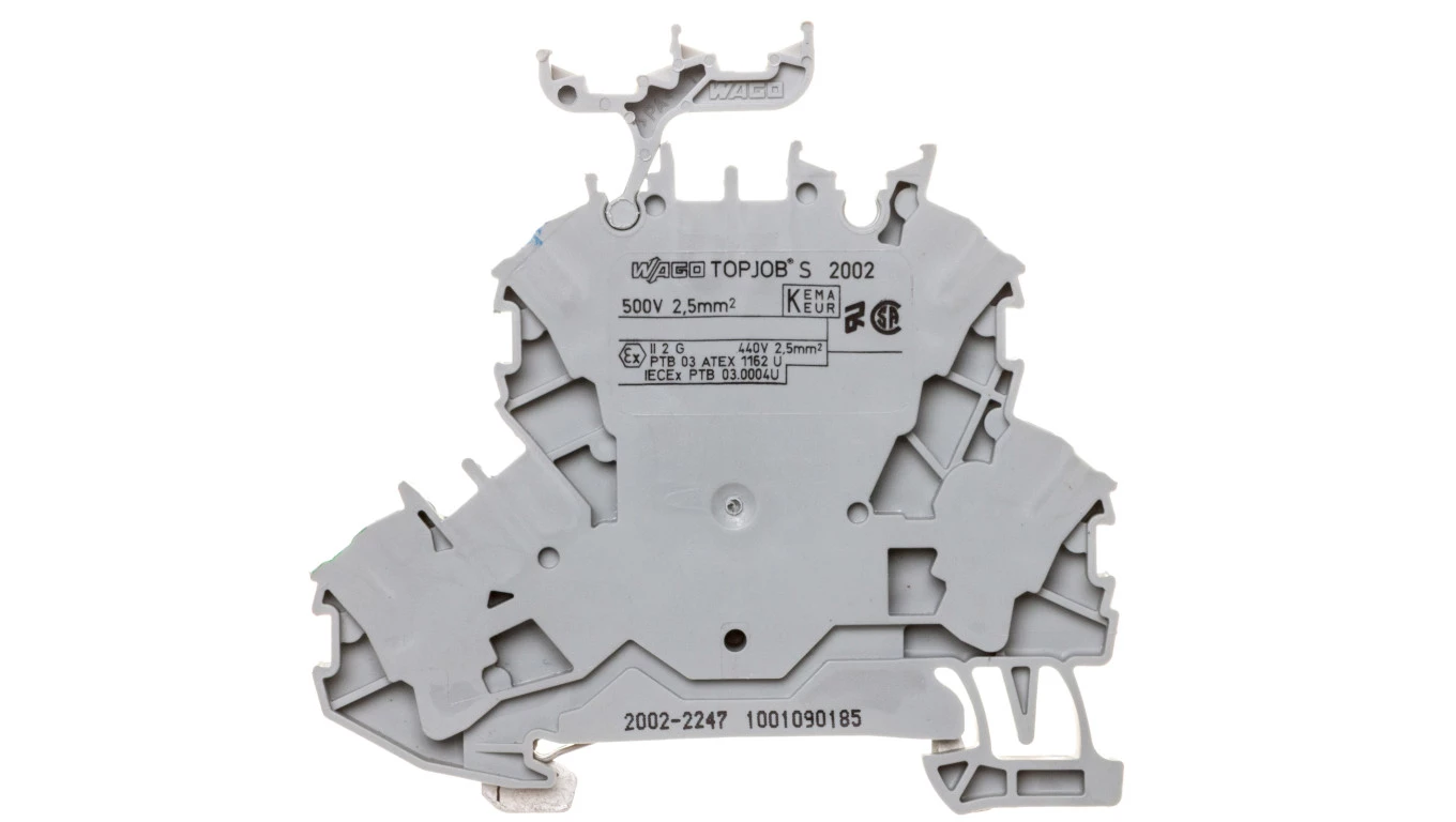 złączka 2-piętrowa; złączka PE/przelotowa; 2,5 mm²; PE/N; do zastosowań Ex e II; z podstawką oznacznika; na szynę TS 35 x 15 i 35 x 7,5; Push-in CAGE CLAMP®; 2,50 mm²; szary