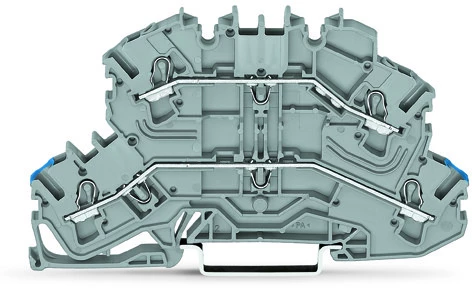 złączka 2-piętrowa; złączka przelotowa/przelotowa; o kształcie złączki rozłączalnej 2-piętrowej; N/L; bez podstawki oznacznika; otwory na przewody, parter, nadruk nieb.; na szynę TS 35 x 15 i 35 x 7,5; 2,5 mm²; Push-in CAGE CLAMP®; 2,50 mm²; szary