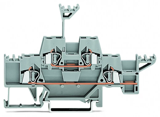 złączka 2-piętrowa; złączka przelotowa/przelotowa; z dodatkowym mostkowaniem dolnego piętra; na szynę TS 35 x 15 i 35 x 7,5; 2,5 mm²; CAGE CLAMP®; 2,50 mm²; szary/szary