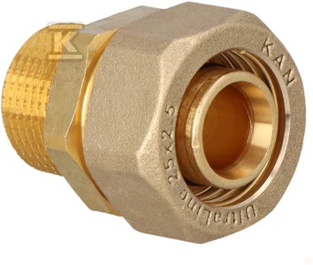 Złączka mosiężna skręcana GZ ultraLINE - 25 G3/4" o numerze katalogowym 2509045007 w kategorii Kształtki KAN-therm ultraLINE, System KAN-therm ultraLINE. Produkt wyprodukowany przez markę KAN-therm, seria ULTRALINE FITTINGS.