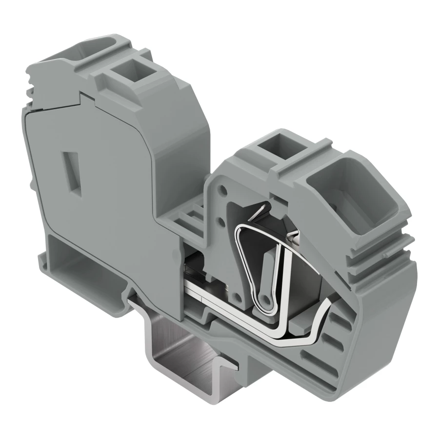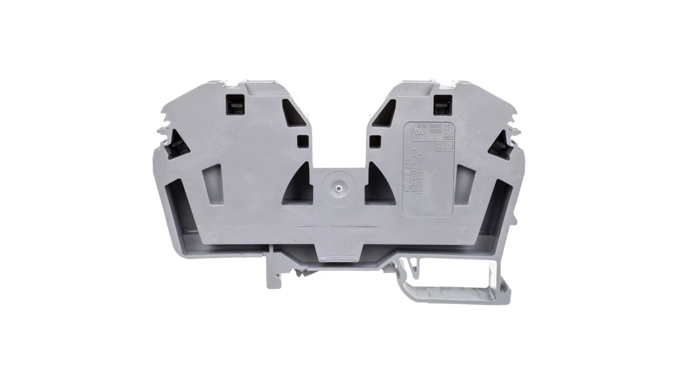 złączka przelotowa 2-przewodowa; 35 mm²; ze zintegrowaną ścianką końcową; opis z boku i na środku; tylko na szynę TS 35 x 15; CAGE CLAMP®; 35,00 mm²; szary
