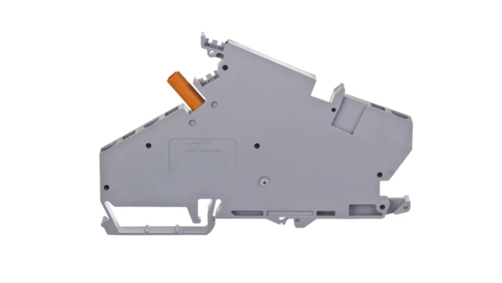 złączka przelotowa 3-przewodowa; 6 mm²; z izolowanym gniazdem pomiarowym; np. do przekładników prądowych; opis na środku; na szynę TS 35 x 15 i 35 x 7,5; CAGE CLAMP®; 6,00 mm²; szary