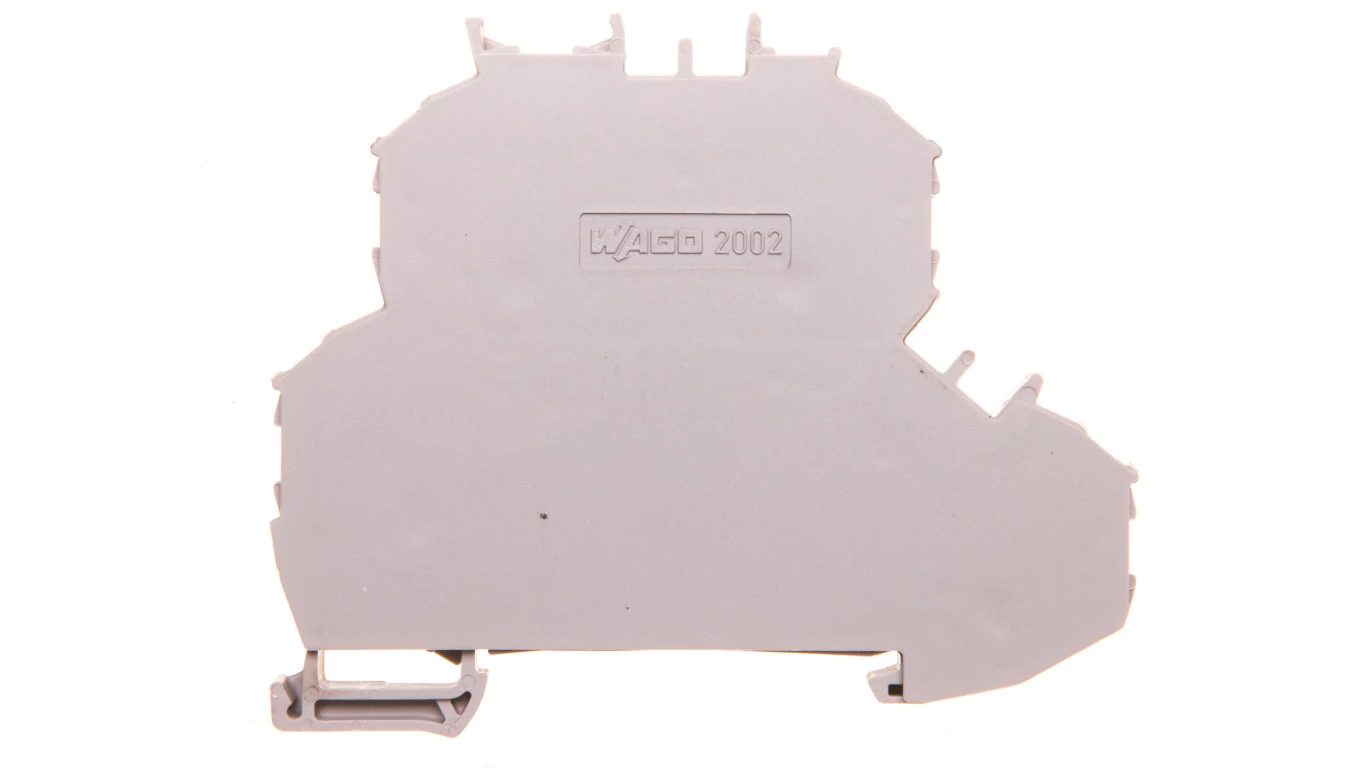 złączka 2-piętrowa; złączka przelotowa/przelotowa; ze ścianką końcową; L/N; bez podstawki oznacznika; otwory na przewody piętro, nadruk nieb.; na szynę TS 35 x 15 i 35 x 7,5; 2,5 mm²; Push-in CAGE CLAMP®; 2,50 mm²; szary