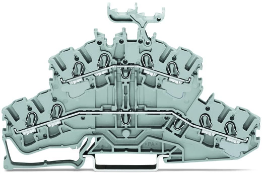 złączka 2-piętrowa 4-przewodowa; złączka przelotowa/przelotowa; L/L; z podstawką oznacznika; na szynę TS 35 x 15 i 35 x 7,5; 2,5 mm²; Push-in CAGE CLAMP®; 2,50 mm²; szary