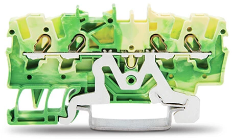 Złączka 4-przewodowa PE 1,5 mm do zastosowań Ex e II opis z boku i na środku na szynę TS 35 x 15 i 35 x 7,5 Push-in CAGE CLAMP 1,50 mm żółto-zielony o numerze katalogowym 2001-1407 w kategorii Złączki i zaciski ochronne sprężynowe, Złączki listwowe sprężynowe. Produkt wyprodukowany przez markę WAGO, seria TOPJOB® S.