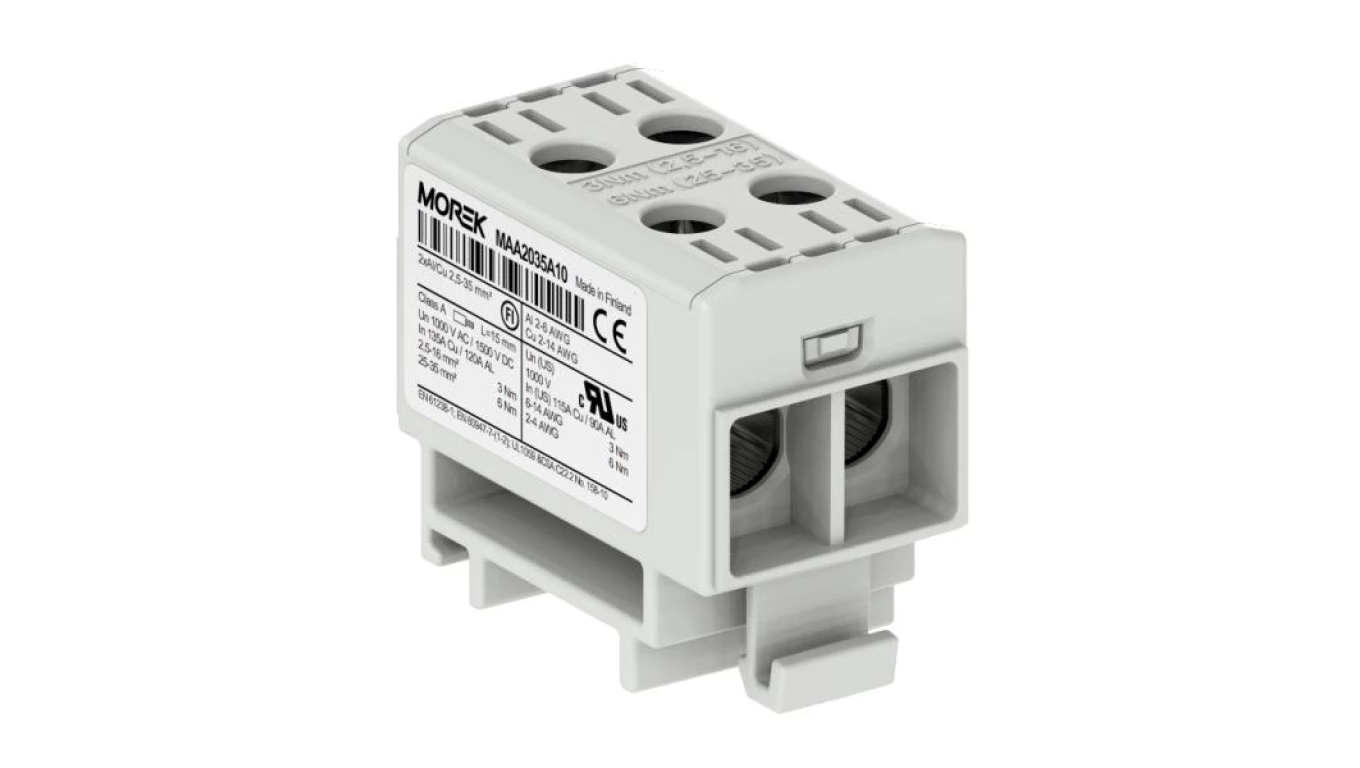 ZŁĄCZKA SZYNOWA PRZELOTOWA 2X AL/CU 2.5-35.0MM2 1000V ZACISK UNIWERSALNY SZARY