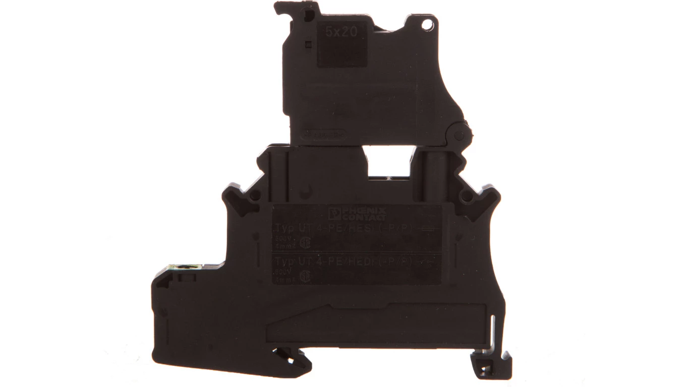 Złączka szynowa z bezpiecznikiem 5x20 2-przewodowa 4mm2 czarna LED 250V AC/DC UT 4-PE/HESI LA 250 (5X20) 3070079 /50szt./