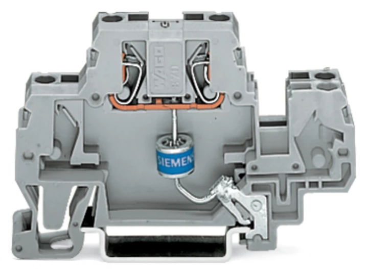 złączka do zabudowy elementów; 2-piętr.; z iskiernikiem gazowym; na szynę TS 35 x 15 i 35 x 7,5; 2,5 mm²; CAGE CLAMP®; szary
