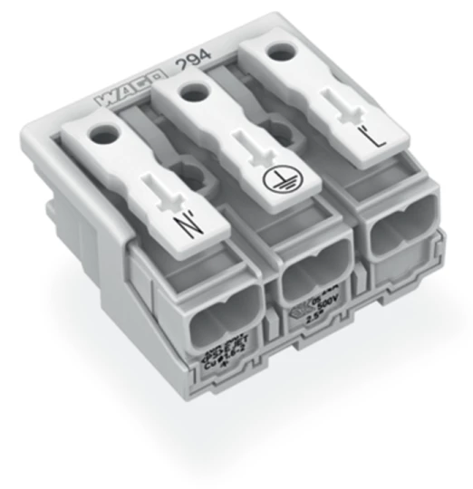 Złączka zasilająca 3-biegunowa bez stopek ze stykiem PE 294-4313 /500szt./