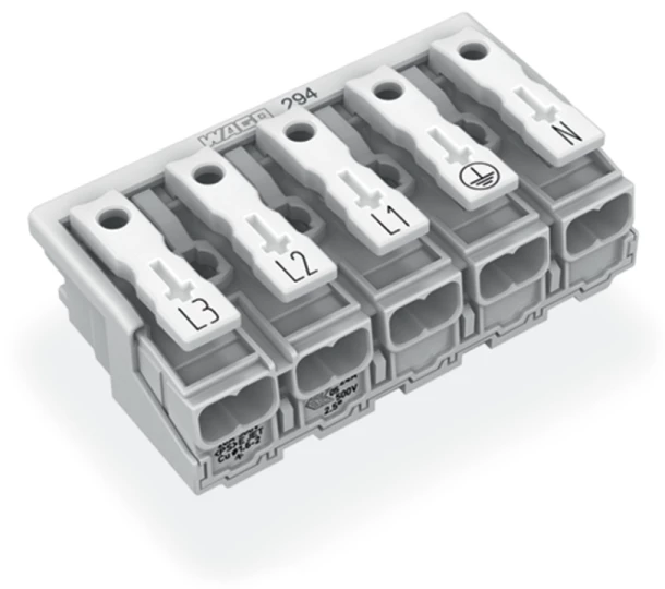 Złączka zasilająca 5-biegunowa ze stopkąmi bez styku PE 294-5015 /250szt./