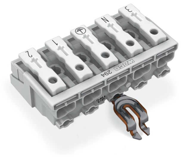 Złączka zasilająca 5-biegunowa ze stopkąmi ze stykiem PE 294-5355 /250szt./