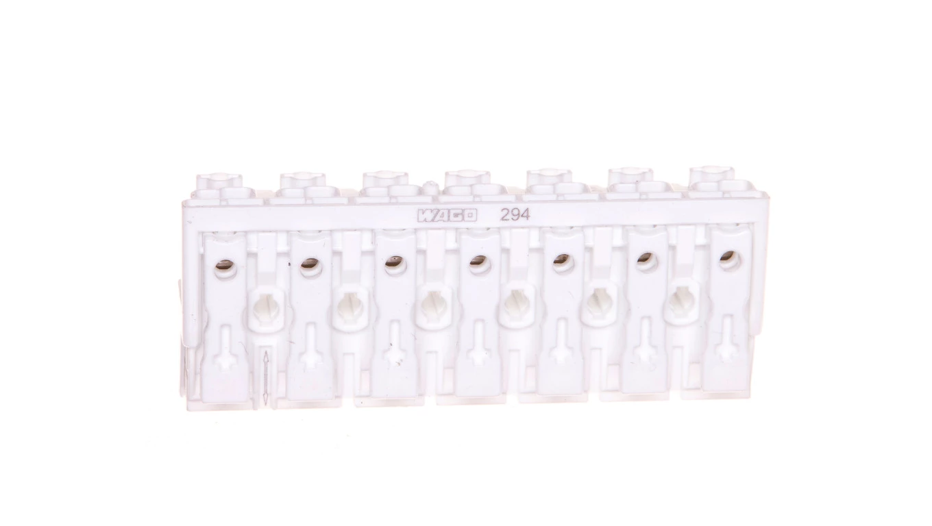 złączka zasilająca; przyciski: od strony zewn.; bez styku PE; 7-bieg.; od strony oprawy: do przew. jednodr.; od strony inst.: do wsz. rodz. przewodów; maks. 2,5 mm²; temperatura otoczenia maks. 85°C (T85); biały