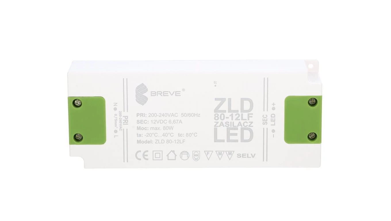 ZLD 80-12LF ZASILACZ LED 80W 6.6A IP20 100-240V AC / 12V DC