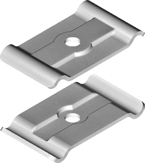 Zacisk ZSW E90. Jeden zacisk składa się z dwóch blaszek jako komplet. o numerze katalogowym 902200 w kategorii Akcesoria do metalowych tras kablowych, Kablowe systemy nośne z metalu. Produkt wyprodukowany przez markę BAKS, seria ZSW.