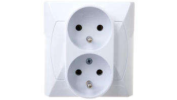 AKCENT BIAŁY GNIAZDO 2X Z/U Z FUNKCJĄ NIEZAMIENNOŚCI FAZ ZACISKI ŚRUBOWE 16A 250V