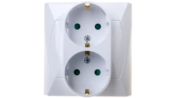 AKCENT BIAŁY GNIAZDO 2X SCHUKO Z PRZESŁONAMI ZACISKI ŚRUBOWE 16A 250V
