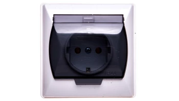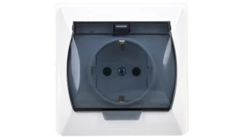 AKCENT BIAŁY GNIAZDO 1X SCHUKO Z KLAPKĄ DYMNĄ IP44 Z PRZESŁONAMI ZACISKI ŚRUBOWE 16A 250V