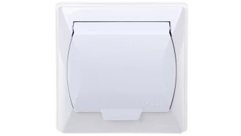 AKCENT BIAŁY GNIAZDO 1X SCHUKO Z KLAPKĄ IP44 ZACISKI ŚRUBOWE 16A 250V