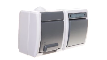 AQUANT SZARY ŁĄCZNIK NT UNIWERSALNY + GNIAZDO 2X Z/U Z KLAPKĄ IP55 ZACISKI ŚRUBOWE