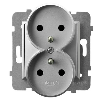 ARIA MODUŁ SREBRNY GNIAZDO 2X Z/U Z PRZESŁONAMI ZACISKI ŚRUBOWE 16A 250V