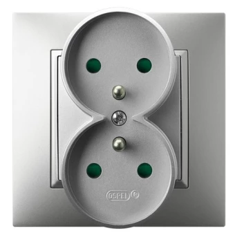 ARIA SREBRNY GNIAZDO 2X SCHUKO Z PRZESŁONAMI ZACISKI ŚRUBOWE 16A 250V