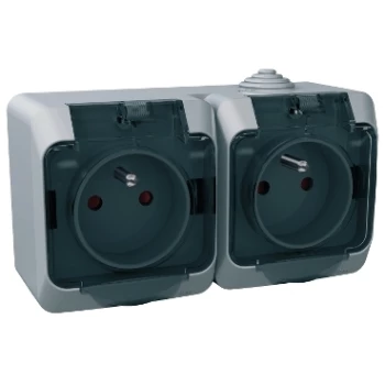 Cedar Plus Gniazdo hermetyczne podwójne z/u 16A IP44 szare WDE000624