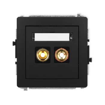 DECO Gniazdo podwójne RCA (typu cinch - biały i czerwony, pozłacany) czarny mat 12DGRCA-2