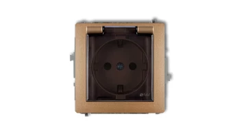 DECO Gniazdo bryzgoszczelne z/u SCHUKO (klapka dymna) złoty metalik 8DGPB-1sdp
