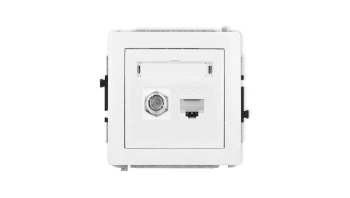 DECO Mechanizm gniazda antenowego poj. typu F (SAT) + gniazda komp. poj. 1xRJ45, kat. 6, 8-stykowy, biały mat 25DGFK-3