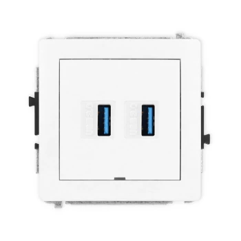 DECO Mechanizm gniazda podwójnego 2xUSB A-A 3.0, bez pola opisowego, biały mat 25DGUSBBO-6