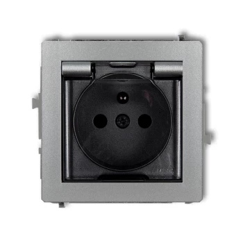 DECO Gniazdo bryzgoszczelne z/u (klapka dymna) srebrny metalik 7DGPB-1zdp