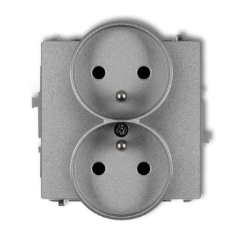 DECO Gniazdo podwójne z/u srebrny metalik 7DGPR-2zp
