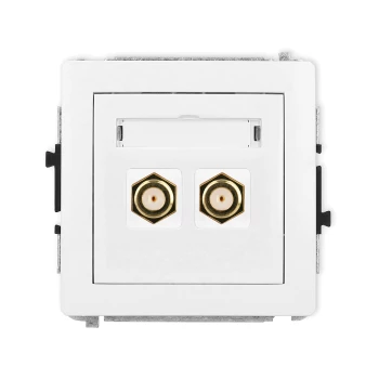 DECO Gniazdo antenowe podwójnego typu F (SAT) pozłacany biały DGF-2.1