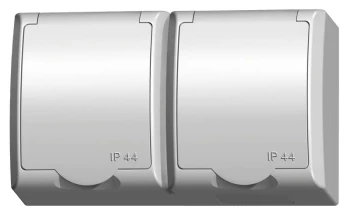 FALA BIAŁY GNIAZDO NT 2X SCHUKO Z PRZESŁONAMI Z KLAPKĄ DYMNĄ IP44 ZACISKI ŚRUBOWE 16A 250V