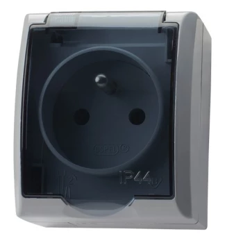 FALA POPIEL/GRAFIT ŁĄCZNIK 1-BIEGUNOWY + GNIAZDO 1X IP-44 Z KLAPKĄ PRZEZROCZYSTĄ ZACISKI ŚRUBOWE