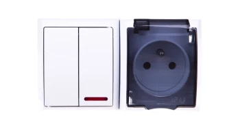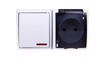 FALA BIAŁY GNIAZDO NT 1X Z/U Z KLAPKĄ DYMNĄ+ŁĄCZNIK NT 1-BIEGUNOWY PODŚWIET ZACISKI ŚRUBOWE 16A IP44