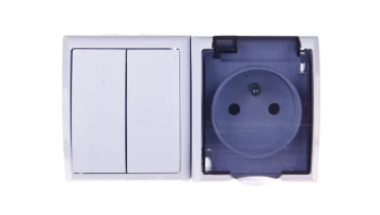 FALA BIAŁY GNIAZDO NT 1X Z/U Z KLAPKĄ DYMNĄ + ŁĄCZNIK NT 1-BIEGUNOWY ZACISKI ŚRUBOWE 16A 250V IP44