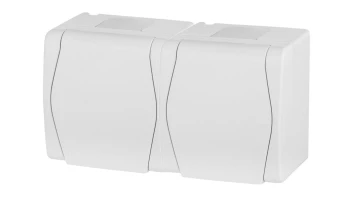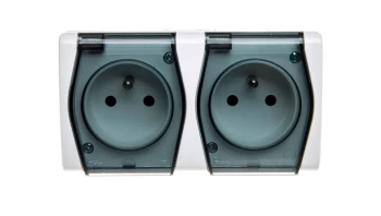 HERMES 2 BIAŁY GNIAZDO NT 2X Z/U Z KLAPKĄ DYMNĄ IP44 ZACISKI ŚRUBOWE 10AX 250V